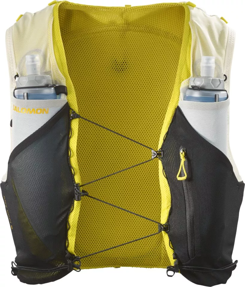 - 2 front flask pockets: Designed to fit Salomon soft flasks these front pockets limit bouncing. Top elastic loops secure your flasks and keep them ready to drink.