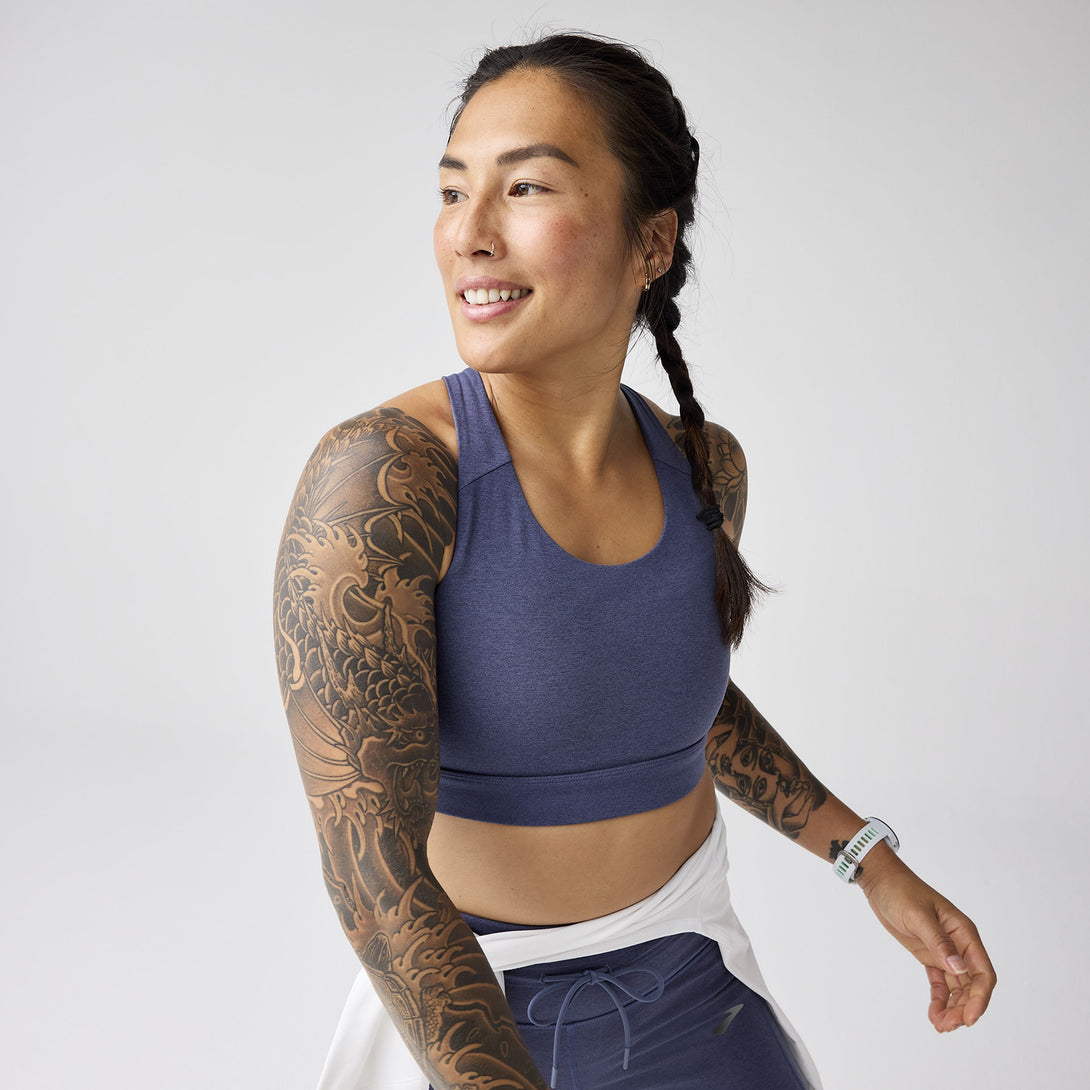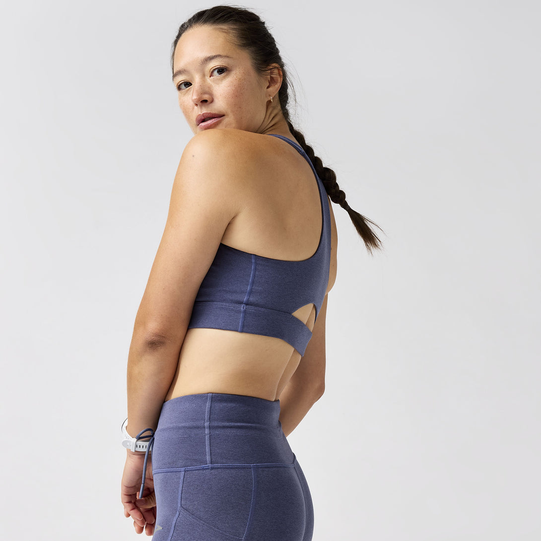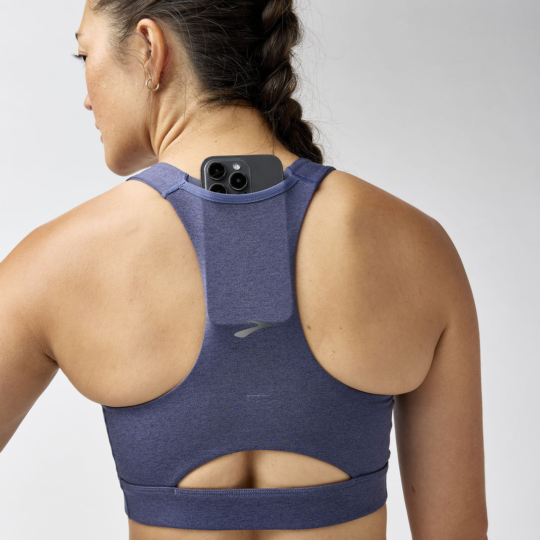 Supportive yet soft this Brooks sports bra is designed for comfort when you're on the move. A large pocket on the back can fit a phone or nutrition so you can keep your hands free for your run.