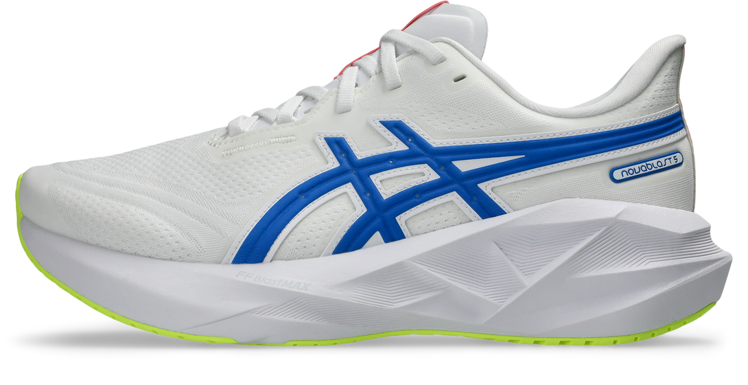 The ASICS NOVABLAST™ 5 ATC is a high-energy, neutral running shoe designed to deliver bounce, comfort, and modern style to every kilometre. Drawing design inspiration from vintage 1980s track suits and running shoes, the ATC (All-Terrain Colourway) blends retro flair with modern performance. The midsole features FF BLAST™ MAX cushioning—ASICS’ most responsive foam—to create plush landings and a dynamic toe-off. Meanwhile, the trampoline-inspired outsole geometry helps maximize energy return, giving every stride a propulsive feel. The engineered stretch knit upper wraps comfortably around your foot while providing enhanced breathability and a secure fit. Ideal for Canadian runners seeking lightweight responsiveness and bold style in their daily training.