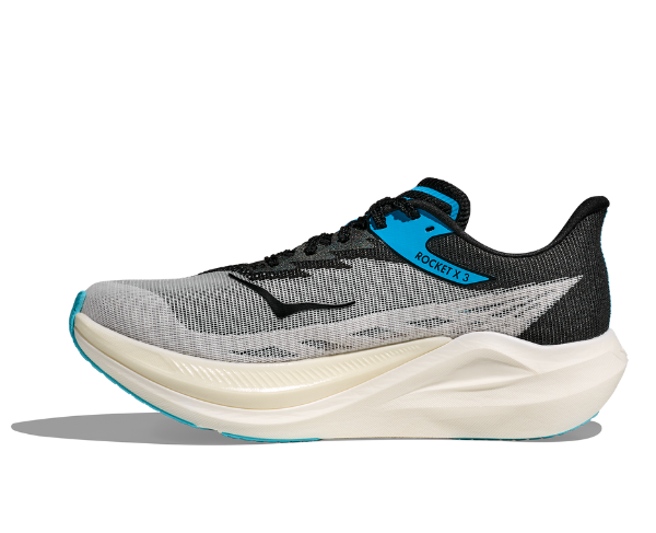The Rocket X 3 is a carbon-fiber super shoe engineered to help you crush your fastest race times without sacrificing support. Building on the responsive, high-performance foam of its predecessor, this iteration features an updated carbon fiber plate with winglets for enhanced propulsion. A sticky rubber outsole boosts traction on variable surfaces, while the single-layer engineered mesh upper maximizes breathability. The stitch-and-turn collar reduces friction and blisters, and the gusset removal makes getting in and out of the shoe easier than ever.