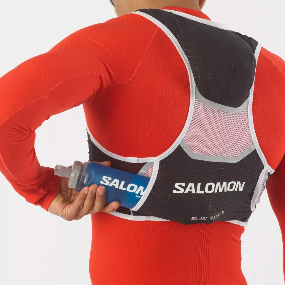 S/LAB PULSAR 3 is the minimalistic lightweight hydration vest ideal for shorter runs. Modular curated storage options offer quick easy access to hydration on-the-fly. Two pockets in the front include 250 ml soft flasks and a hybrid back pocket can store a 500ml flask or a jacket. Extra snug and stable thanks to Sensifit™ and Quick link fastening.