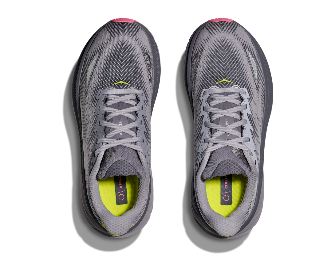 Rain or shine, the HOKA Clifton 9 GTX is built to keep you moving in comfort. This waterproof road running shoe blends signature HOKA cushioning with GORE-TEX Invisible Fit technology to deliver a smooth ride through wet conditions. Whether you're out for a daily run or braving a rainy walk, the Clifton 9 GTX offers the lightweight support and weatherproof protection you need — all with a sustainable touch. Finished with reflective accents and strategically placed traction pods, this versatile trainer is ready for anything our Canadian climate can throw at you.