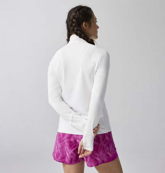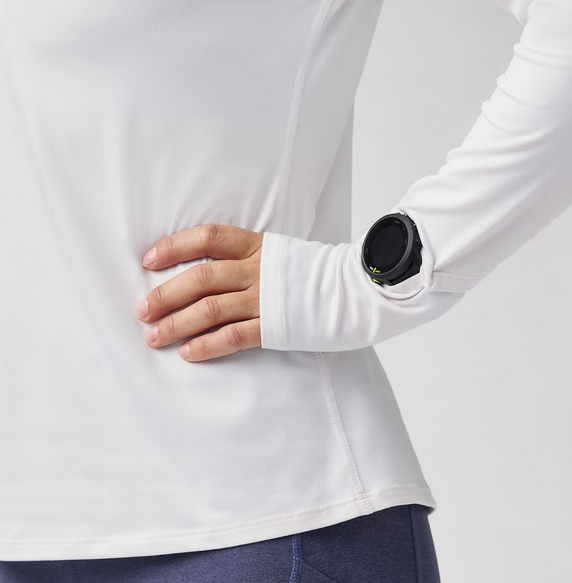 The softest layer in your running wardrobe just got an upgrade — our women’s half-zip running top features a watch window so you can stay warm and toasty while checking your pace.