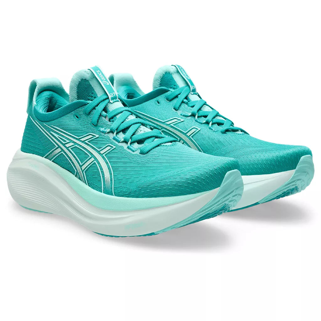 The GEL-NIMBUS 27 shoe's soft cushioning properties help you feel like you're landing on clouds. This design is revamped to help create a softer and smoother running experience.